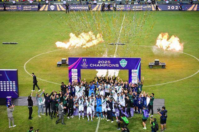 维港见证,绿茵争霸!8月23日晚,伴随着绚丽夺目的烟花秀在香港大球场上演,2025年沙特超级杯正式落下帷幕,阵中拥有伊万·托尼、马赫雷斯、凯西、伊巴涅斯等明星球员的吉达国民最终捧起了冠军奖杯。短短6天的时间,全球各地的球迷们汇聚在香港大球场,为心目中的偶像加油助威!与此同时,以C罗为首的众多球星也感受到了球迷们的热情,四支球队在比赛中全情投入,拒绝“摸鱼”,为夺取最终的冠军燃尽自己。